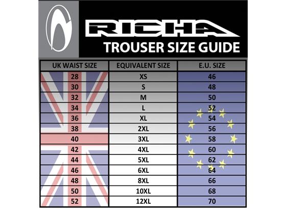 ×DESCRIPTION Richa's Cyclone Gore-Tex pants is an all-round 4 season pants, engineered with a Z-liner construction, the fixed 3L Gore-Tex membrane product. You'll enjoy the very comfortable fit, thanks to the use of many soft materials increasing the rider's comfort. Protection against cold and chill circumstances thanks to a warm detachable thermal liner - a padded liner construction- easily to be removed with the smart layer connection zipper system. Impact and abrasion protection is guaranteed with the use D3O knee impact protectors (level 1)and durable impact fabric. Richa has been developing strong and durable abrasion fabrics for many years now, offering a ... far better protection during an impact or slide on rough and hard surfaces. A 360 YKK zipper is fitted on the Cyclone Gore-Tex pants to zip and connect the Cyclone Gore-Tex jacket or any other Richa Gore-Tex jacket. Even in summer you'll experience the wide functionality of this great pair of trousers, as the A.V.S. Airvent system is highly present in the Cyclone Gore-Tex pant at the upper leg area, for a maximum airflow increase. 3M reflective welding areas on the upper and lower leg area are improving your visibility during night or in bad weather conditions and a strong anti-slip layer maximizes stability in the saddle when facing wet and humid weather conditions.